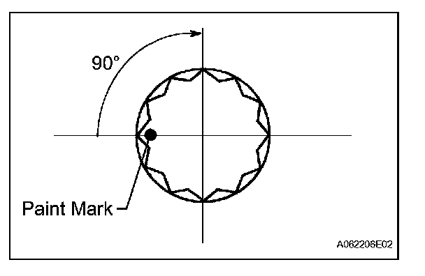 Check that the paint marks of each bolt are at a 90° angle from the original position.