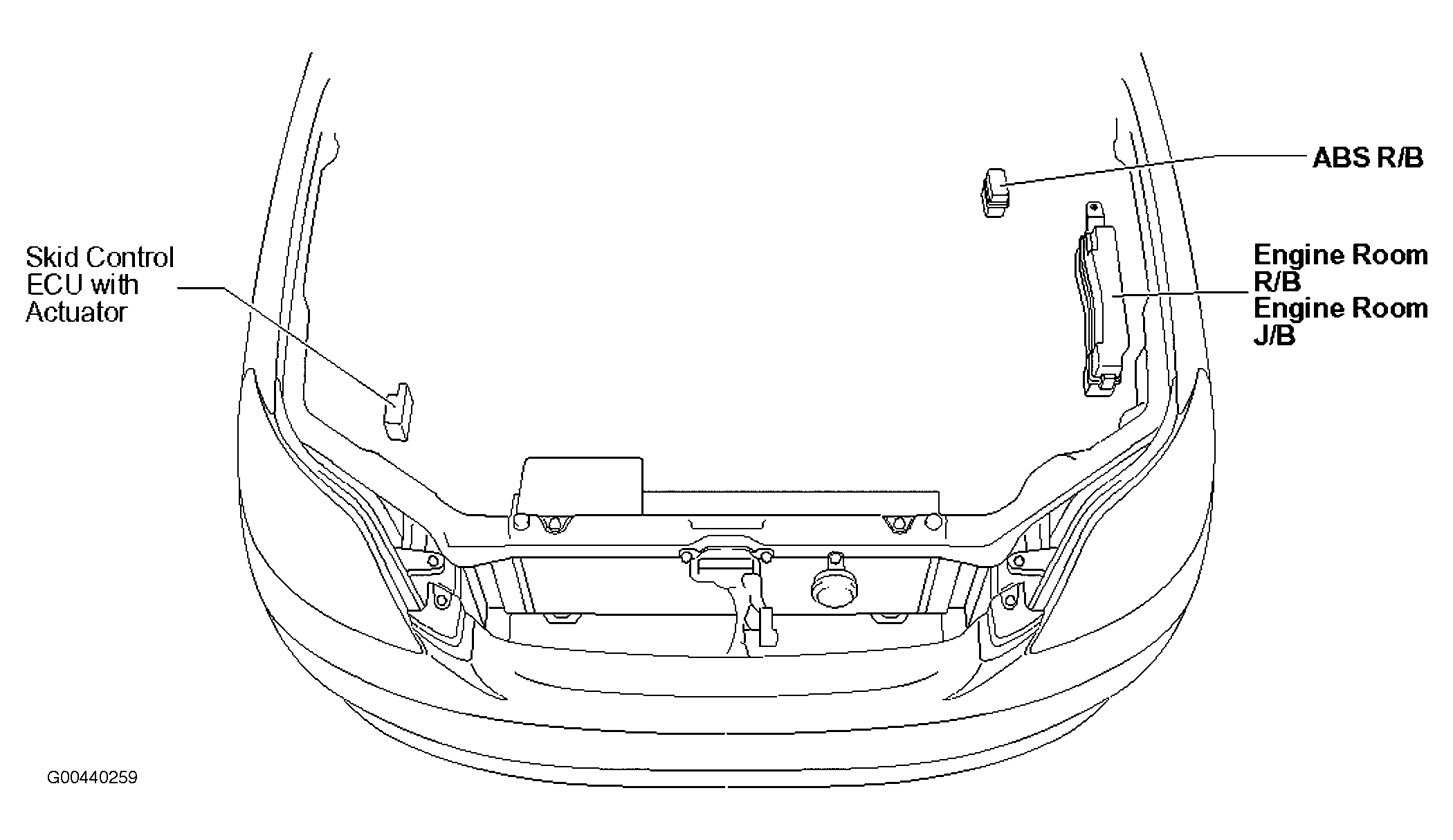 ABS R/B On left side of engine compartment. See Figure.