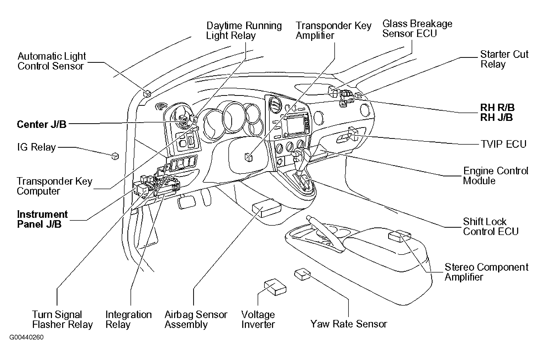 RH J/B Behind upper right side of dash. See Figure.