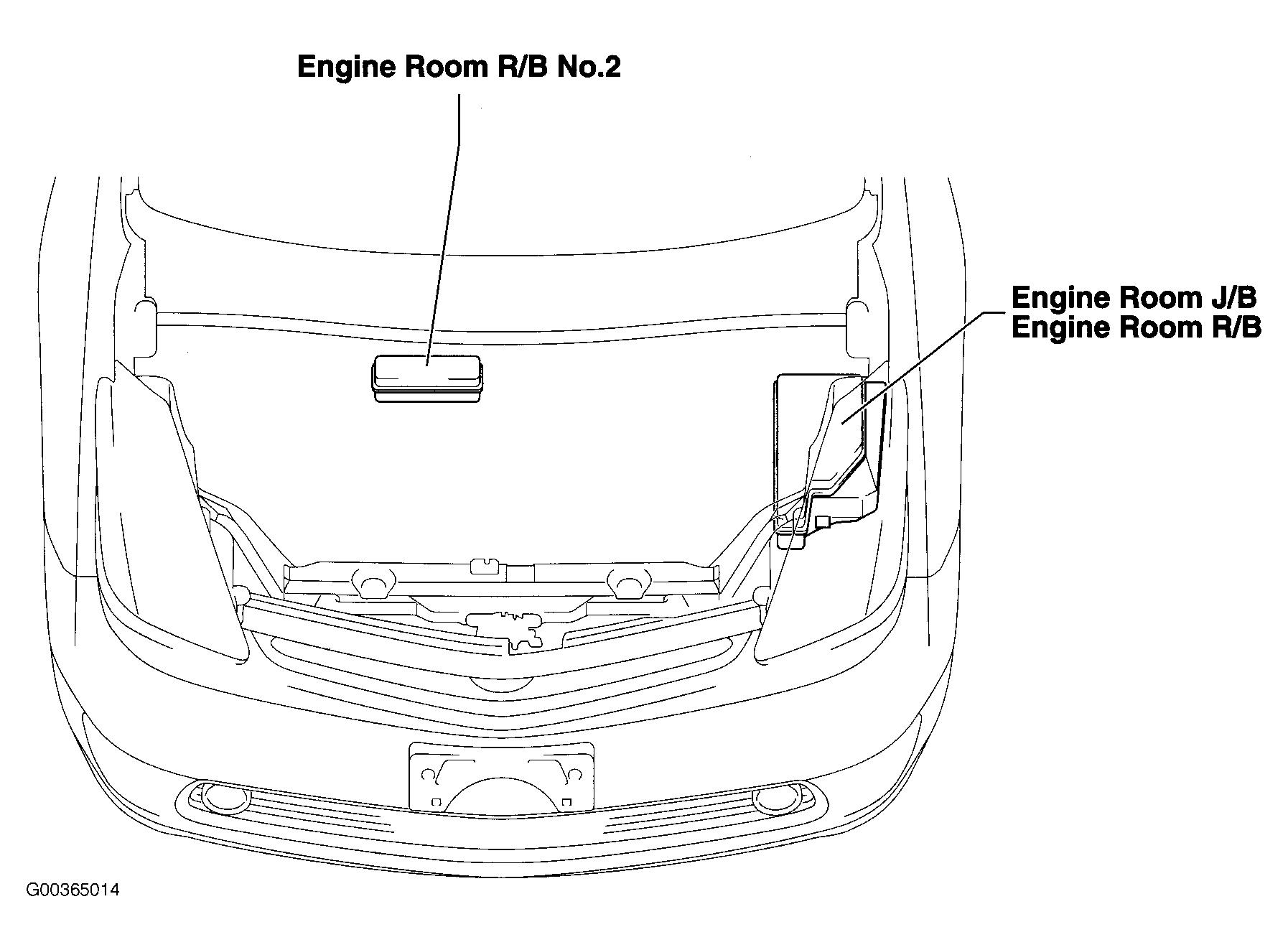 | Engine Room R/B No. 2 | Rear of engine compartment. See Figure. |