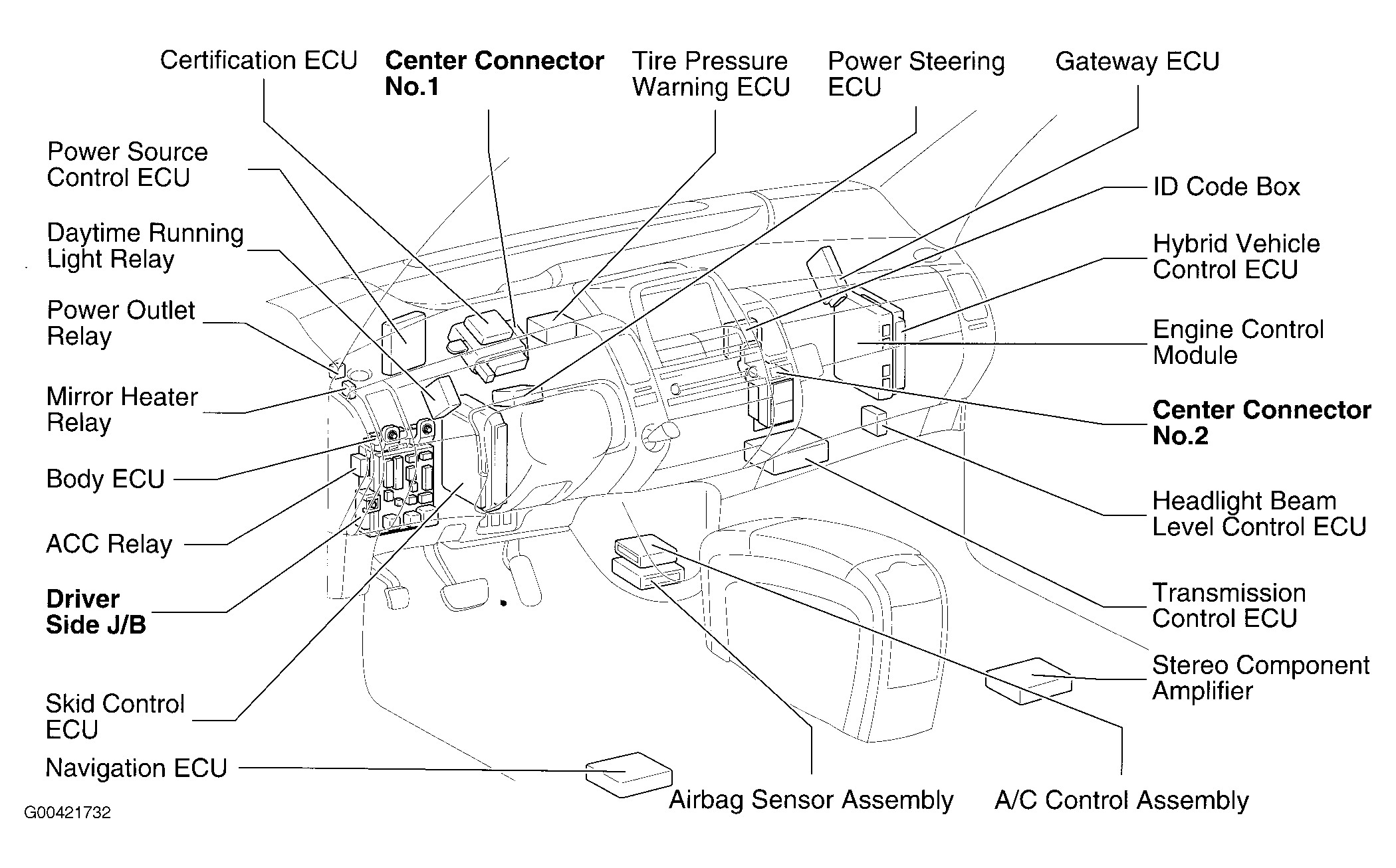 | Driver Side J/B | Behind left end of dash. See Figure. |
