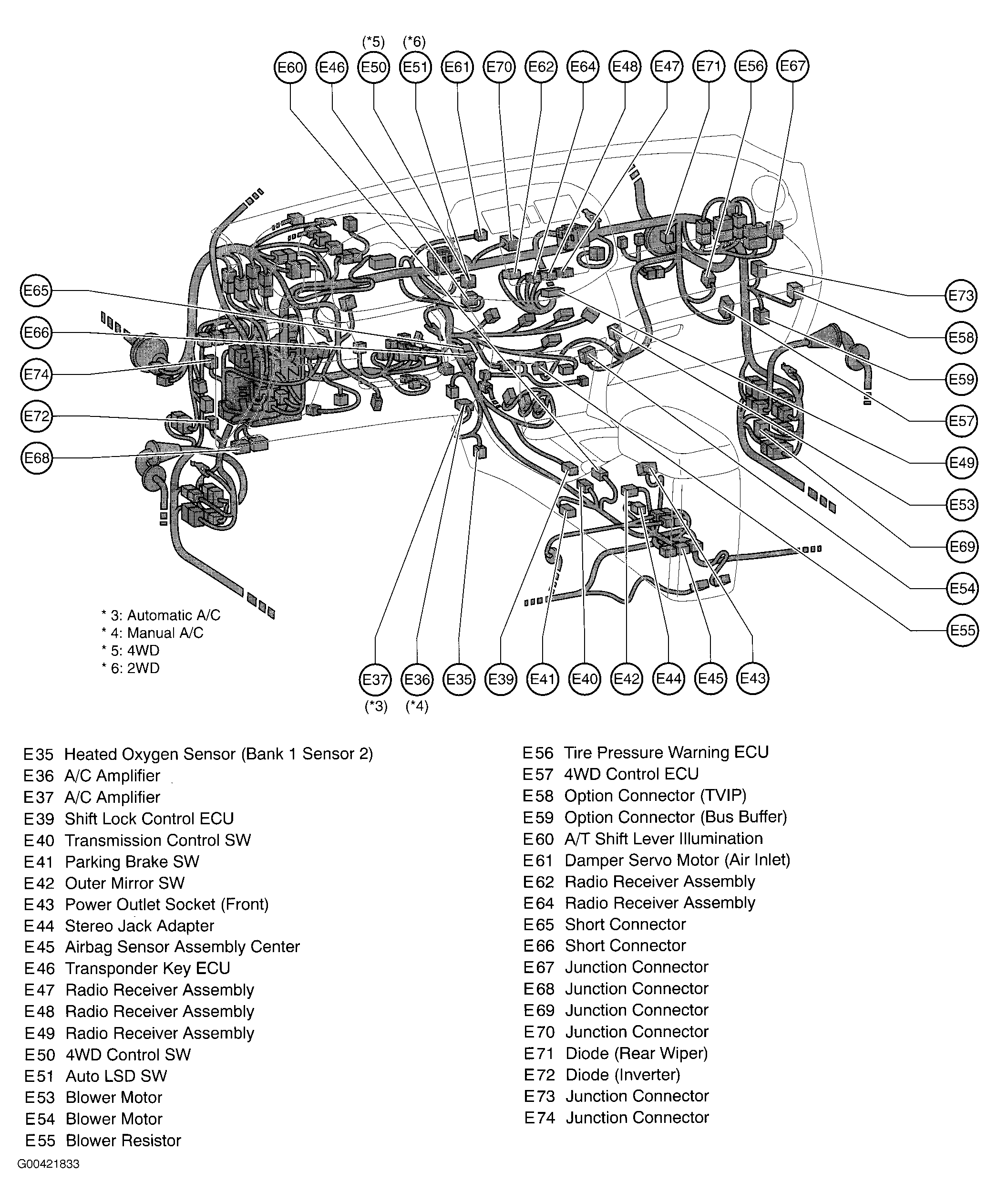 Overhead J/B Front center of roof, at windshield. See Figure.