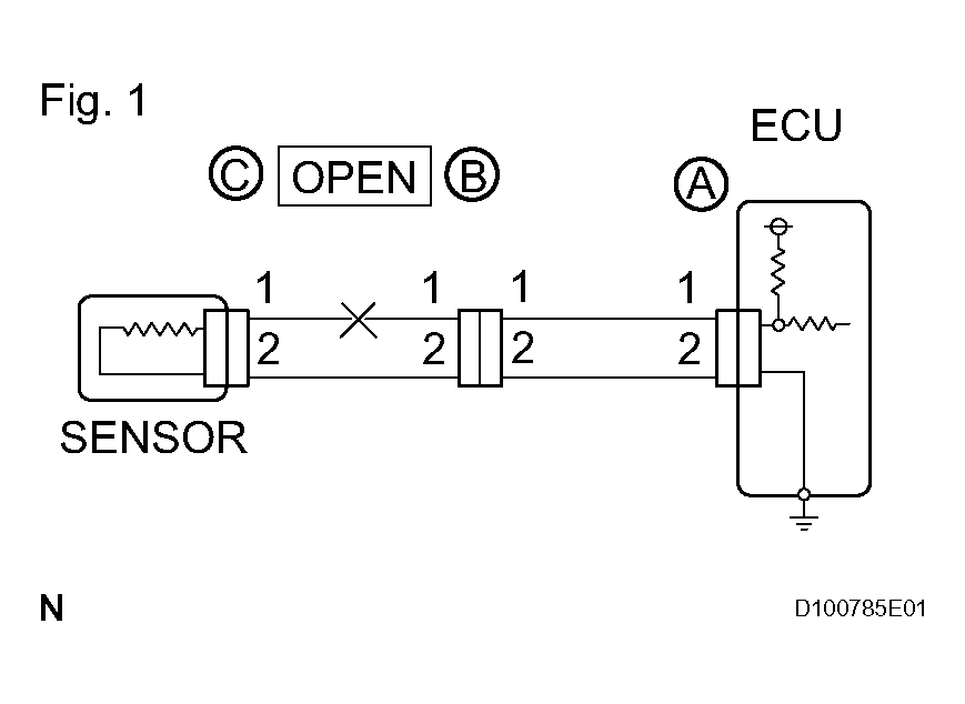 - In a circuit in which voltage is applied to the ECU connector terminal, an open circuit can be checked by conducting a voltage check. With each connector still connected, measure the voltage between the body ground and these terminals (in this order): 1) terminal 1 of connector A, 2) terminal 1 of connector B, and 3) terminal 1 of connector C.