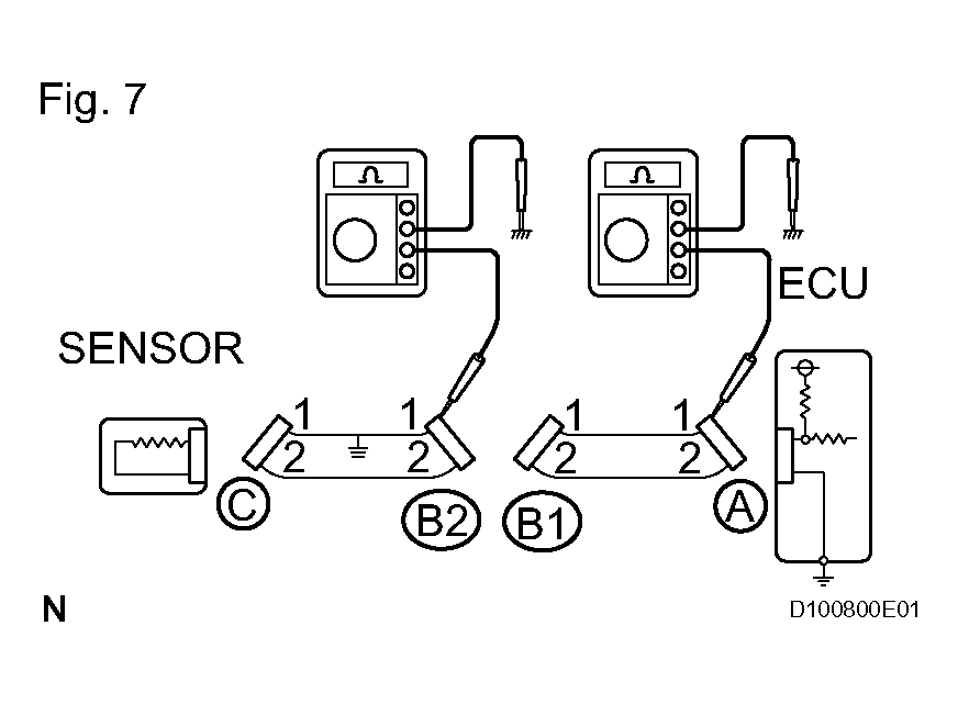 - For an open circuit in the wire harness in Fig 6, check the resistance or voltage, as described below.