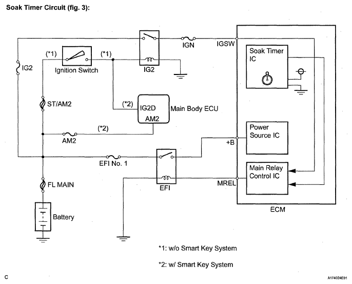 | Soak timer | Built into ECM. To ensure accurate EVAP monitor, measures 5 hours (+-15 min) after ignition switch turned off. This allows fuel to cool down, stabilizing EVAP pressure. When approximately 5 hours elapsed, ECM is activated (refer to Fig 6). |