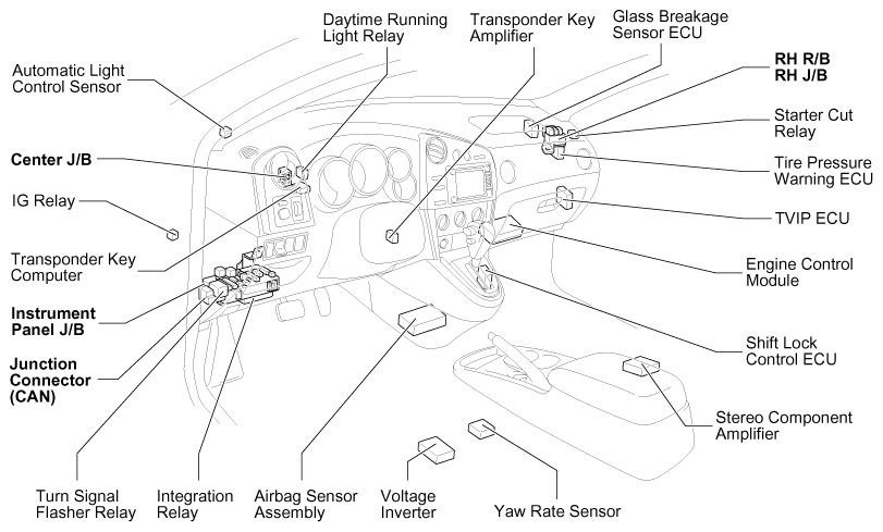 Home >> Toyota >> 2008 >> Matrix Base, Standard >> Repair and Diagnosis (Single Page) >> Electrical >> Fuses & Circuit Breakers >> OEM Junction Block, Ecu & Fuse/Relay Locations >> Relay Block Identification >> RH Relay Block And RH Junction Block