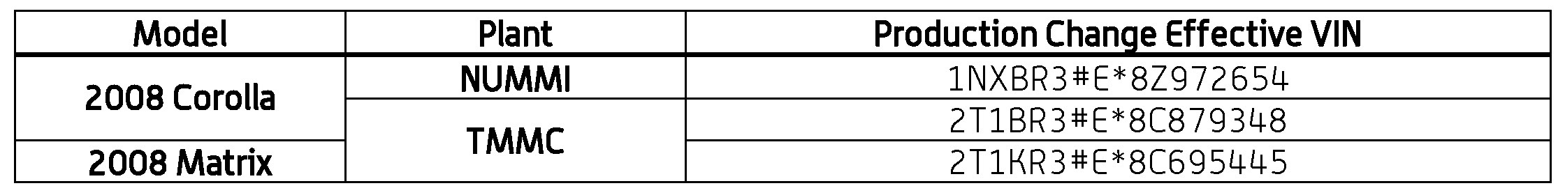 This TSB applies to vehicles produced BEFORE the Production Change Effective VINs shown.