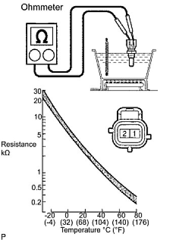 NOTE: If checking the engine coolant temperature sensor in water, be careful not to allow water to intrude into the terminals. After checking, wipe up water on the engine coolant temperature sensor.