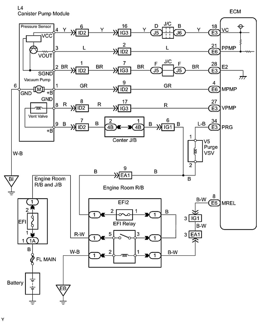 The leak detection pump creates negative pressure (vacuum) in the EVAP system and the pressure is measured. Finally, the ECM monitors for leaks from the EVAP system, and malfunctions in both the canister pump module and purge VSV, based on the EVAP pressure.