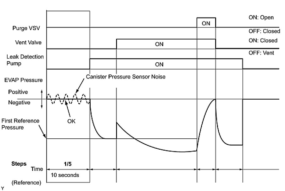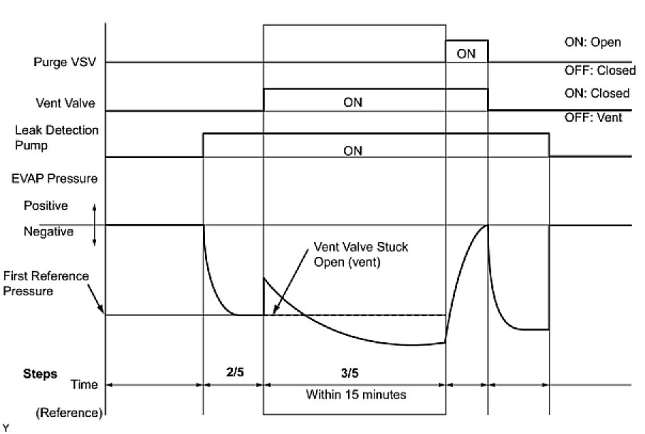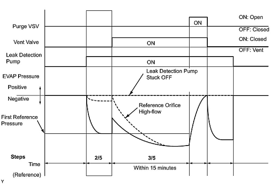 (b) Compare the EVAP pressure in step 3/5 and the second reference pressure standard (step 5/5).
