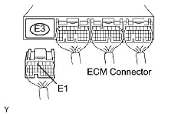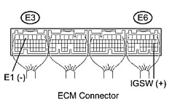 (b) Measure the voltage between the terminals of the E3 and E6 ECM connectors.