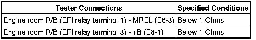 When the ignition switch is turned to the ON position, the battery voltage is applied to terminal IGSW of the ECM. The ECM MREL output signal causes a current to flow to the coil, closing the contacts of the EFI relay and supplying power to terminal +B of the ECM.