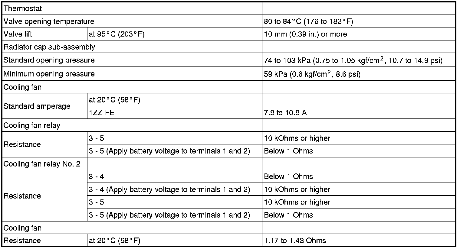 SERVICE SPECIFICATIONS: 1ZZ-FE COOLING: