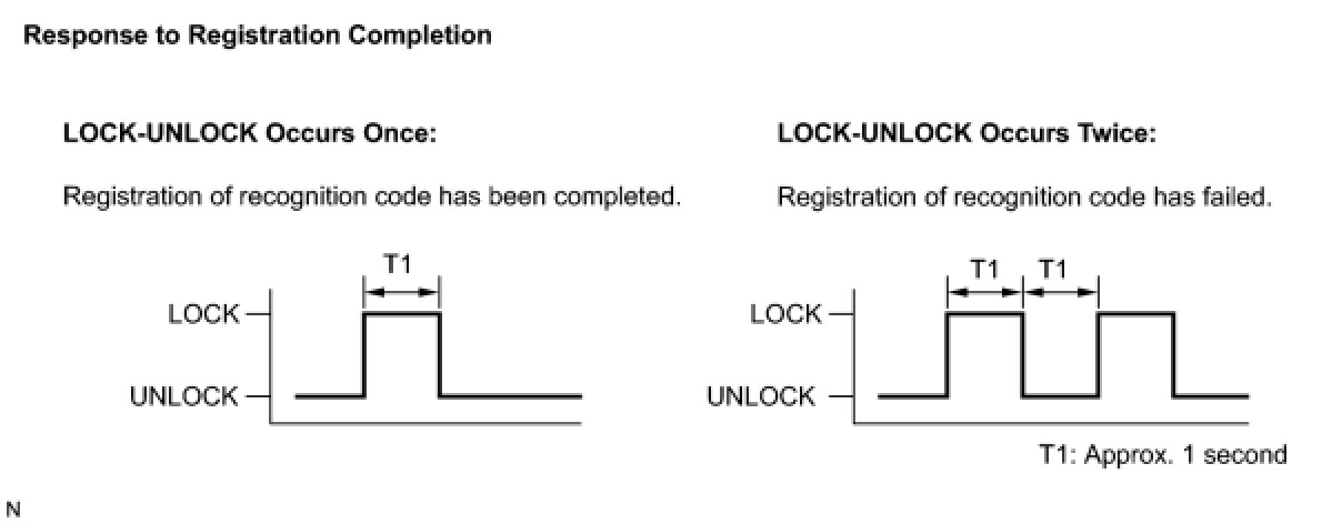 If the LOCK-UNLOCK operation is performed twice, registration of the recognition code has failed. Perform the registration procedure from the beginning (Procedure "B").
