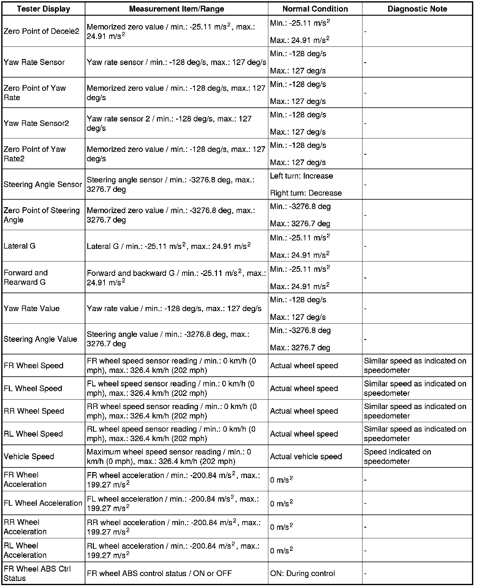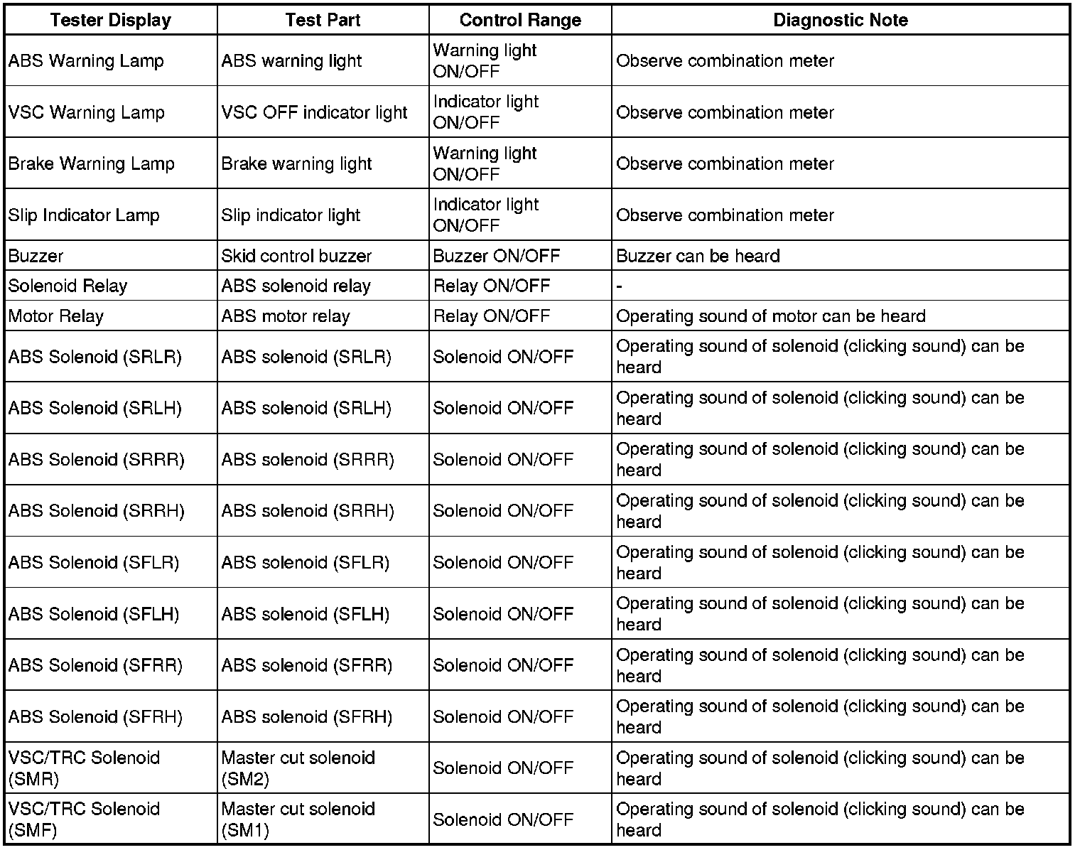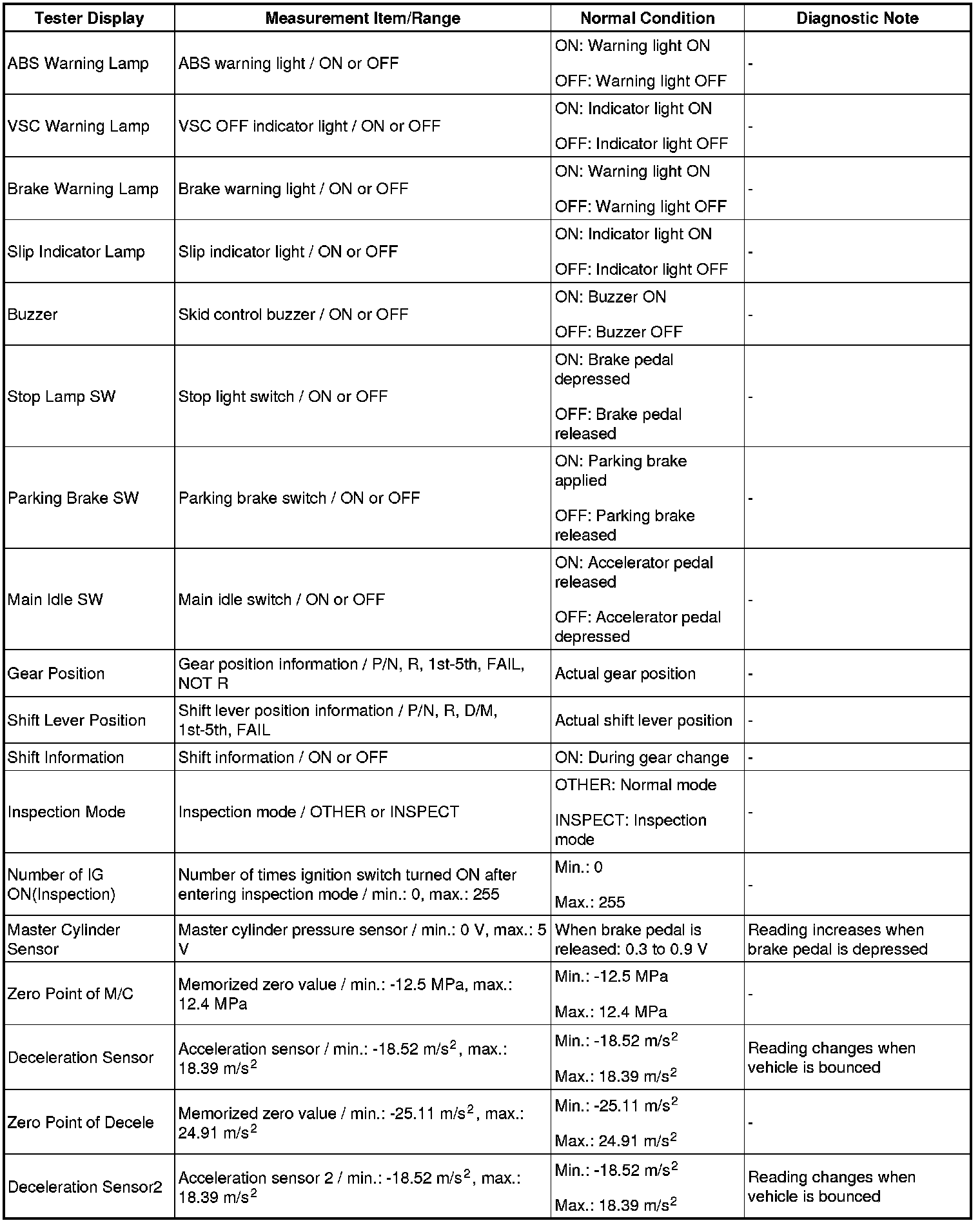 BRAKE CONTROL / DYNAMIC CONTROL SYSTEMS: VEHICLE STABILITY CONTROL SYSTEM: DATA LIST / ACTIVE TEST