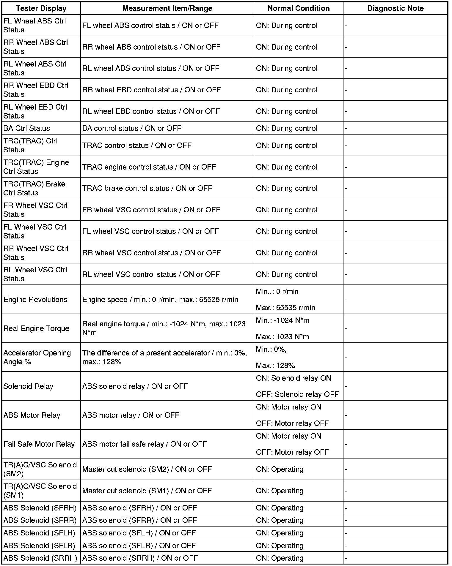 (f) Enter the following menus: Chassis / ABS/VSC/TRAC / Data List.
