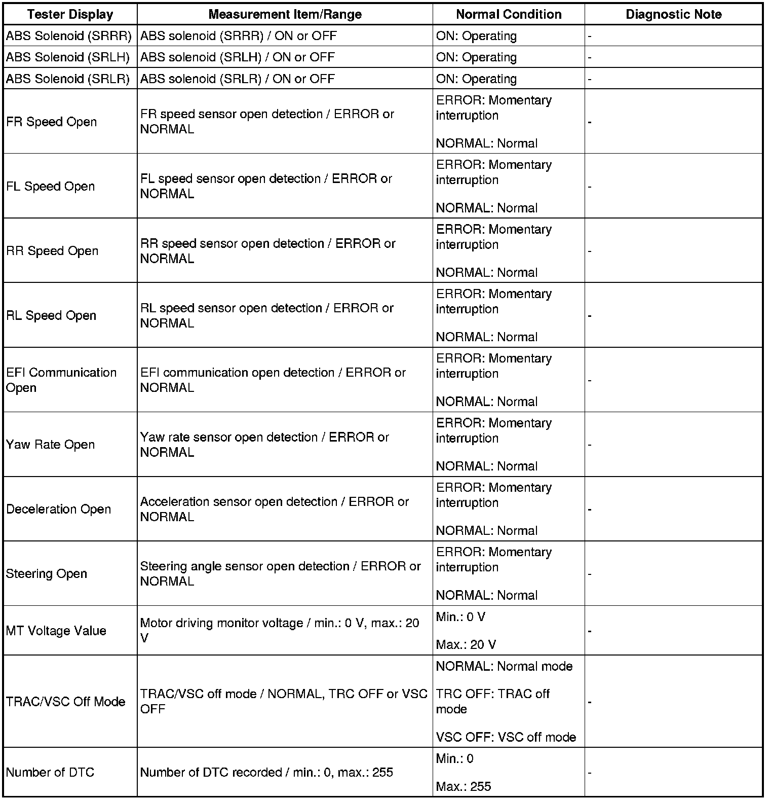HINT: Using the Techstream to read the Data List allows the values or states of switches, sensors, actuators and other items to be read without removing any parts. This non-intrusive inspection can be very useful because intermittent conditions or signals may be discovered before parts or wiring is disturbed. Reading the Data List information early in troubleshooting is one way to save diagnostic time.