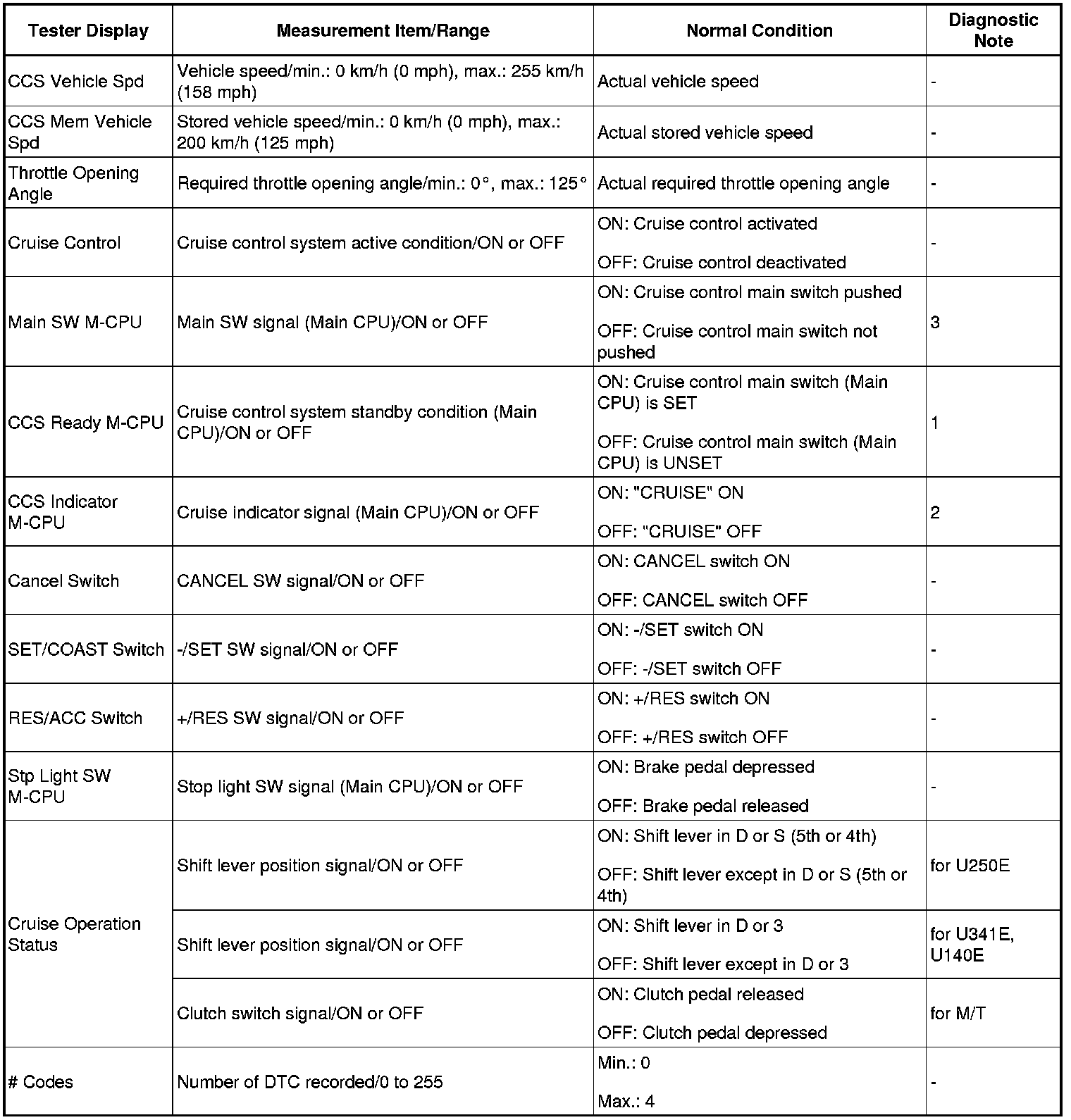 CRUISE CONTROL: CRUISE CONTROL SYSTEM: DATA LIST / ACTIVE TEST