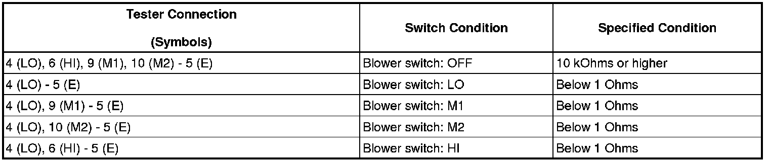 If the resistance is not as specified, replace the No. 2 heater control (blower switch).