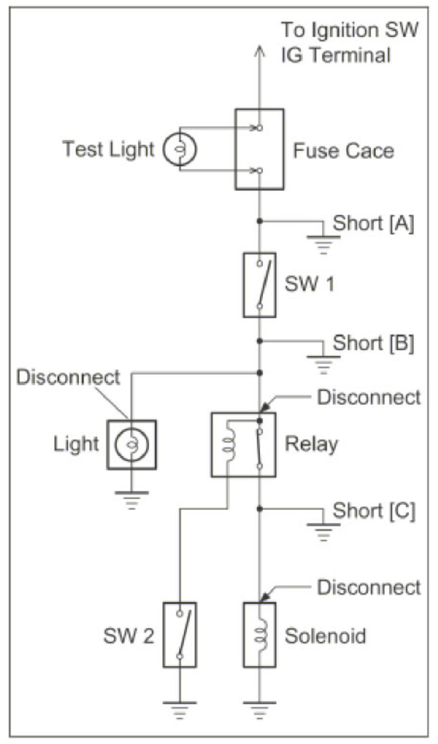 Home >> Toyota >> 2009 >> Matrix AWD L4-2.4L (2AZ-FE) >> Repair and Diagnosis >> Powertrain Management >> Computers and Control Systems >> Data Link Connector >> Diagrams >> Diagnostic Aids >> How to Troubleshoot Electrical Circuits >> Finding A Short Circuit