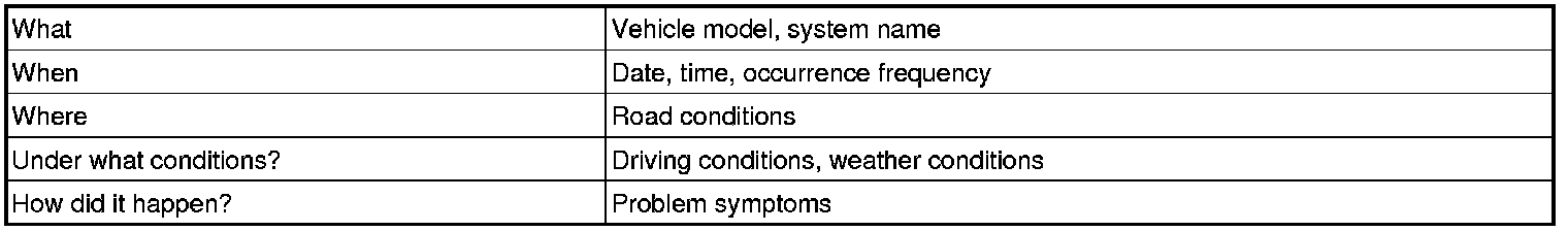 HINT: The most difficult case in troubleshooting is when no problem symptoms occur. In such a case, a thorough problem analysis must be carried out. A simulation of the same or similar conditions and environment in which the problem occurred in the customer's vehicle should be carried out. No matter how much skill or experience a technician has, troubleshooting without confirming the problem symptoms will lead to important repairs being overlooked and mistakes or delays.