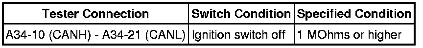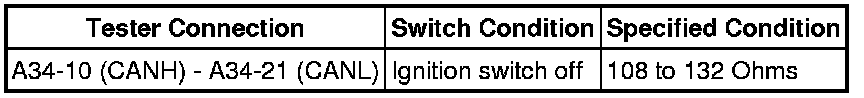 HINT: The resistance must be measured after the center airbag sensor assembly, main wire connect ECU (ECM and combination meter), CAN No. 1 and No. 2 junction connectors are reconnected.