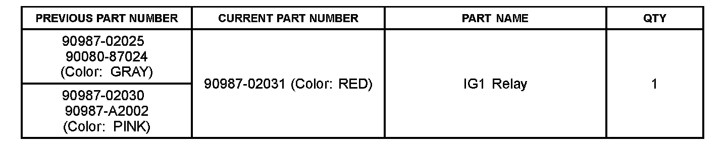 A. If the part number is NOT 90987-02031 then replace the relay with the countermeasure relay.