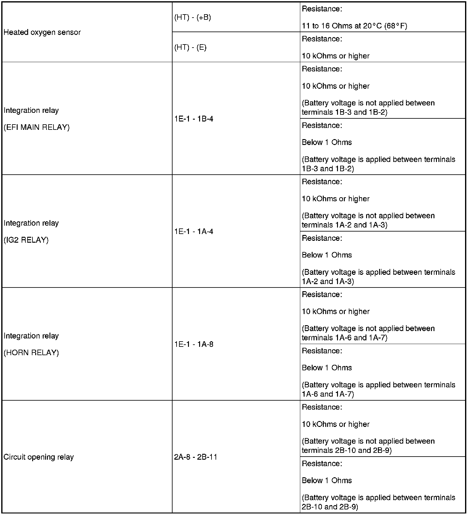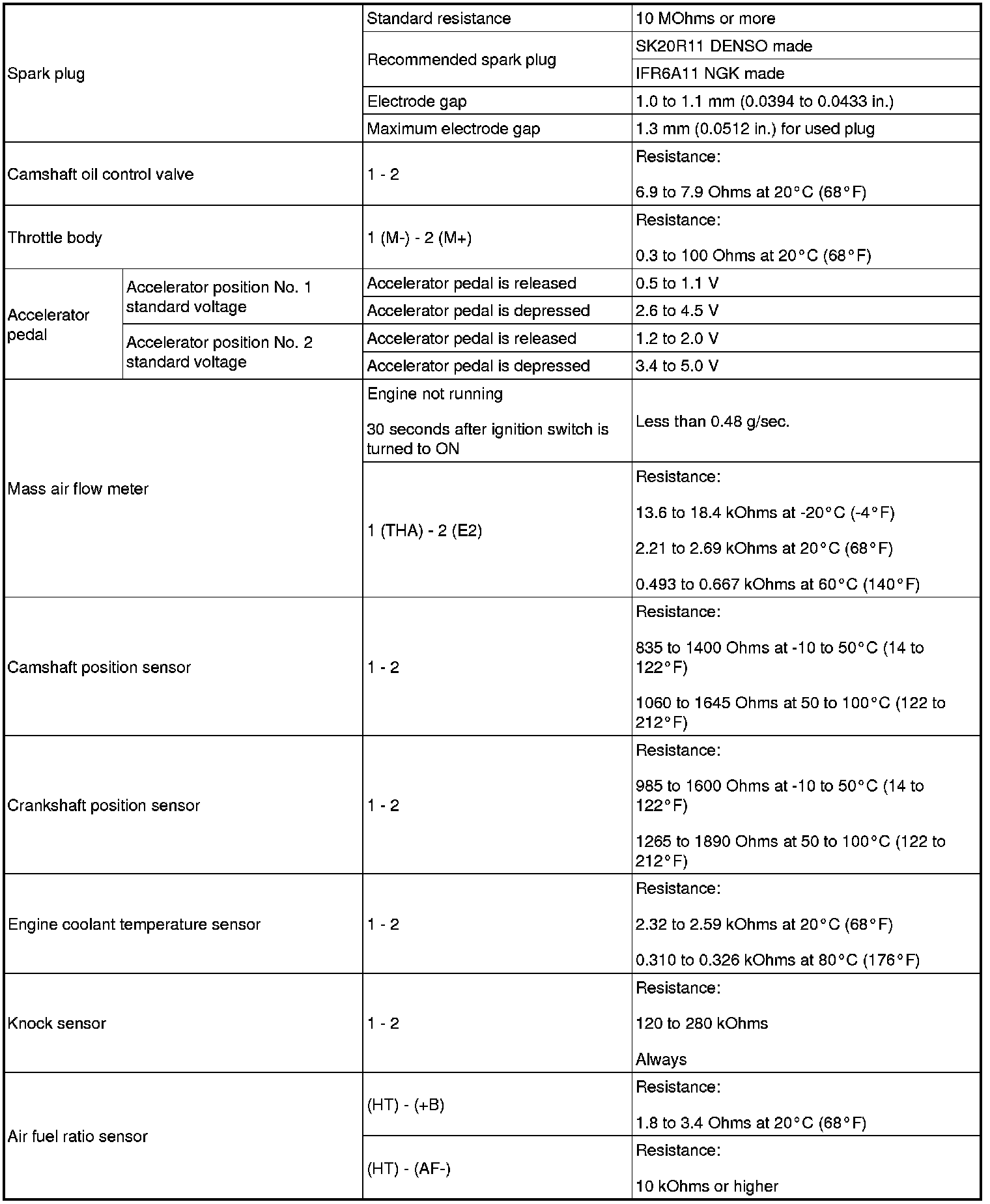 SPECIFICATIONS: 2AZ-FE ENGINE CONTROL: SERVICE DATA