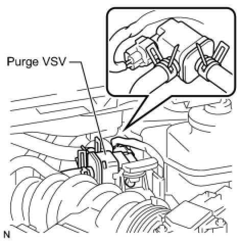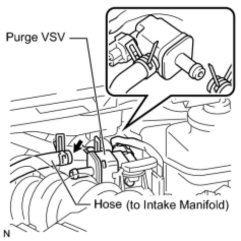 (a) Disconnect the hose (connected to the intake manifold) from the purge VSV.