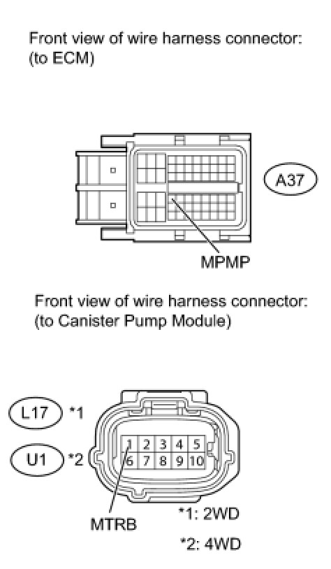 B -- CHECK HARNESS AND CONNECTOR (ECM - CANISTER PUMP MODULE)
