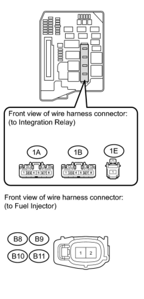 6. CHECK HARNESS AND CONNECTOR (FUEL INJECTOR - INTEGRATION RELAY)