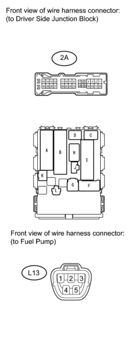 6. CHECK HARNESS AND CONNECTOR (DRIVER SIDE JUNCTION BLOCK - FUEL PUMP)