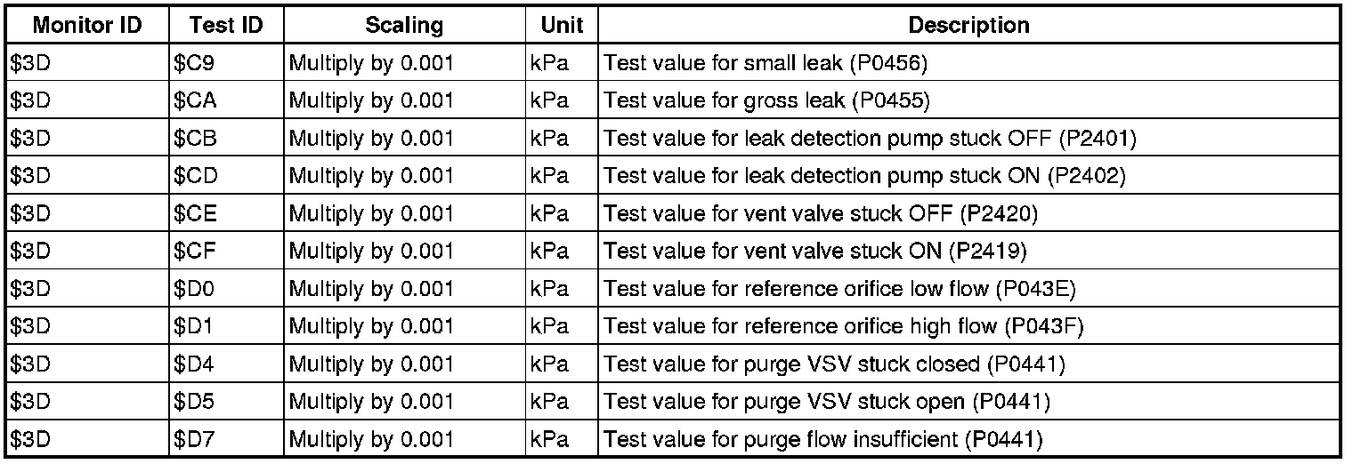 If you use a generic scan tool, multiply the value by the scaling value listed below.