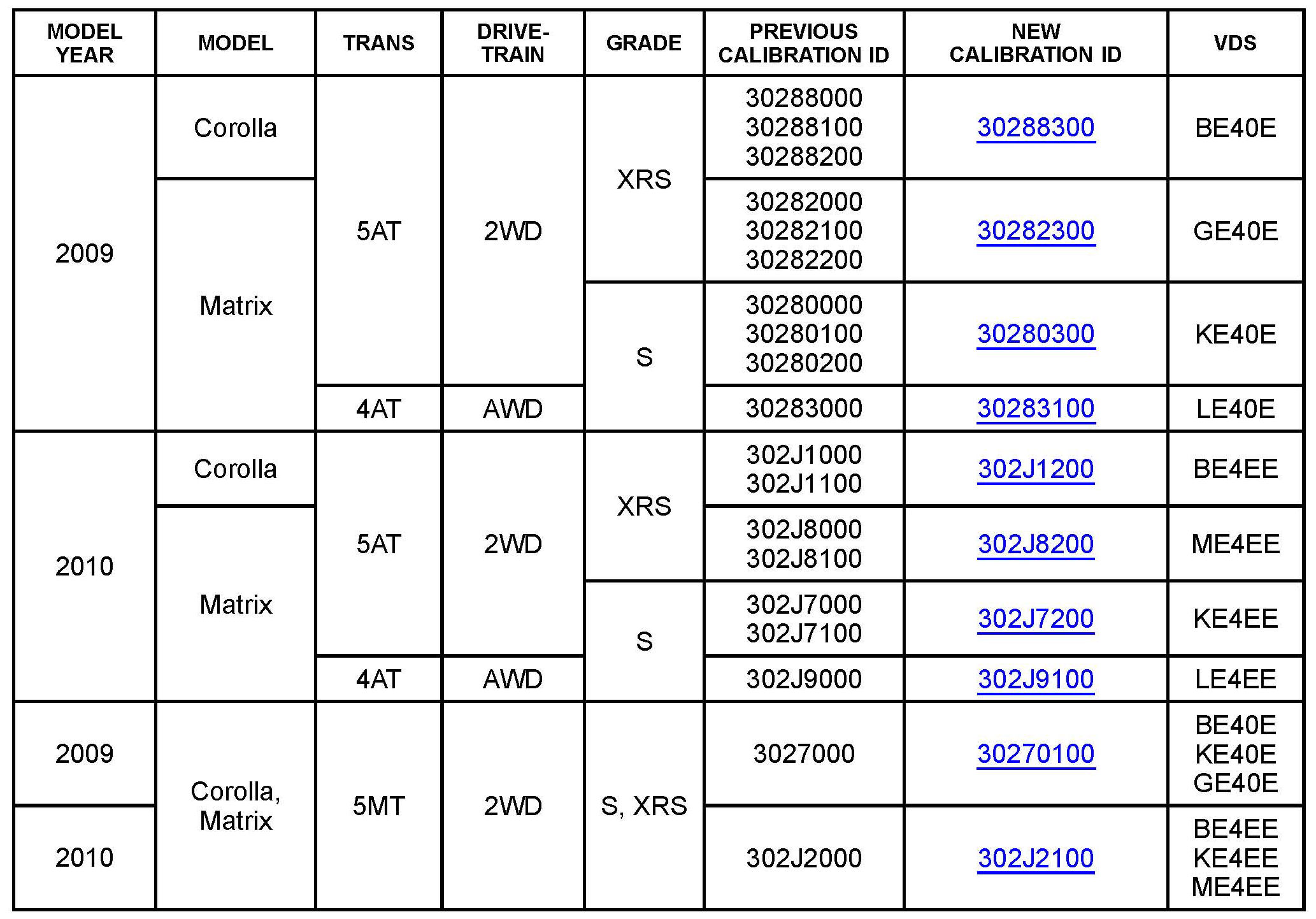 ^ Calibration ID(s) [Refer to the Calibration Identification Chart for the NEW CALIBRATION ID]