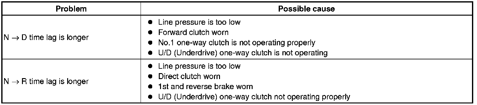 (5) Shift the lever from N to D position. Using a stop watch, measure the time from when the lever is shifted until the shock is felt.