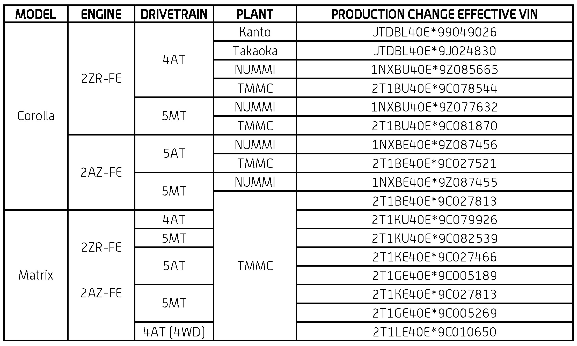 This TSB applies to vehicles produced BEFORE the Production Change Effective VINs shown.