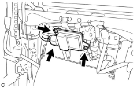 - When installing the occupant classification ECU, be careful that the SRS wiring does not interfere with other parts and that it is not pinched between other parts.