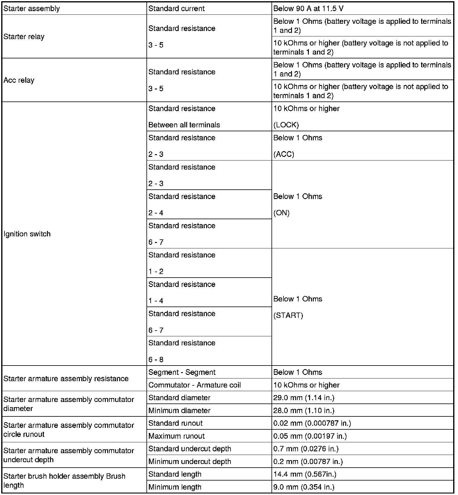 SPECIFICATIONS: 2AZ-FE STARTING: SERVICE DATA