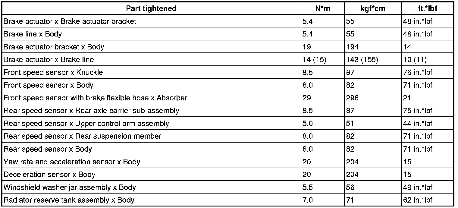 SPECIFICATIONS: BRAKE CONTROL / DYNAMIC CONTROL SYSTEMS: TORQUE SPECIFICATIONS