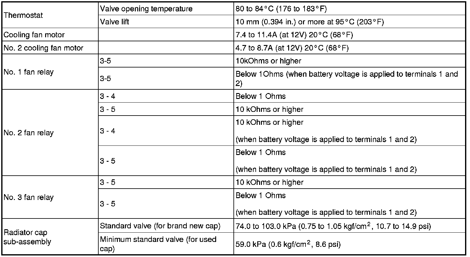 SPECIFICATIONS: 2AZ-FE COOLING: SERVICE DATA
