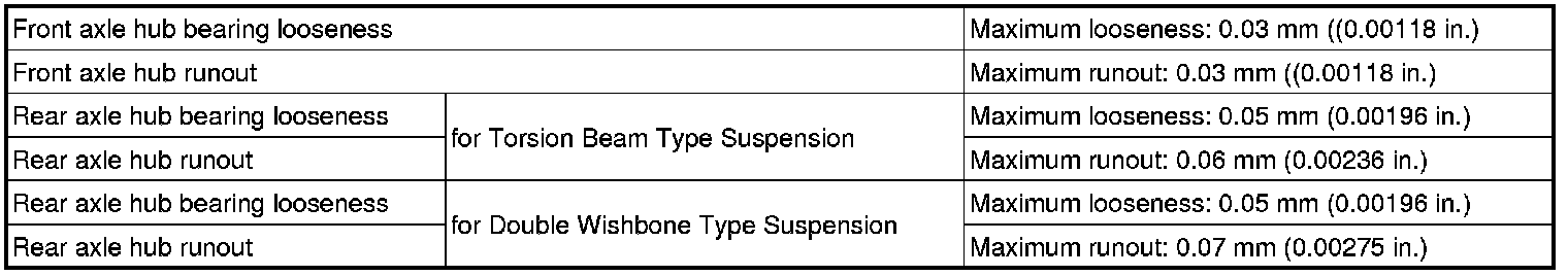 SPECIFICATIONS: AXLE AND DIFFERENTIAL: SERVICE DATA