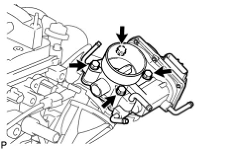 Install the throttle body assembly with the 4 bolts.