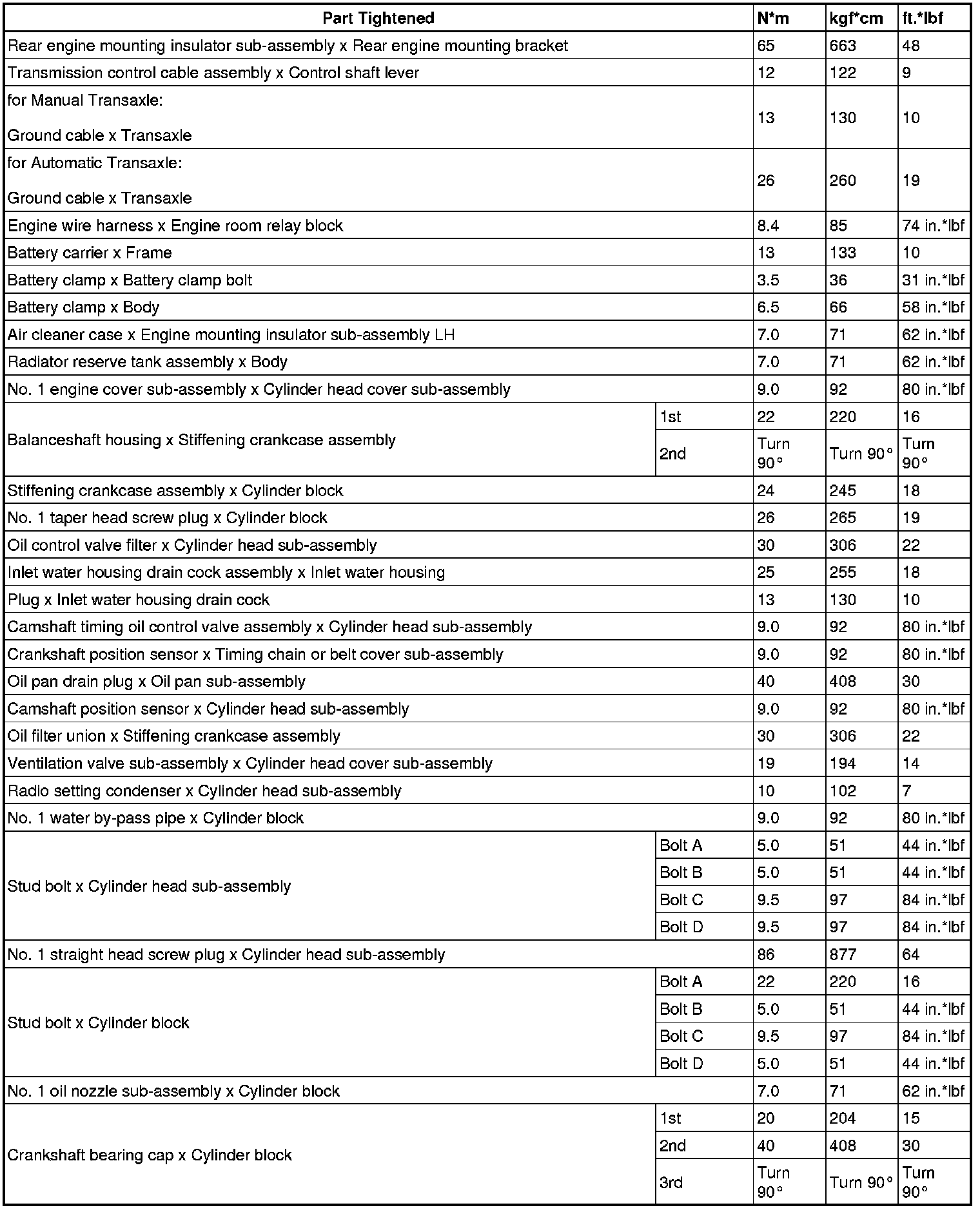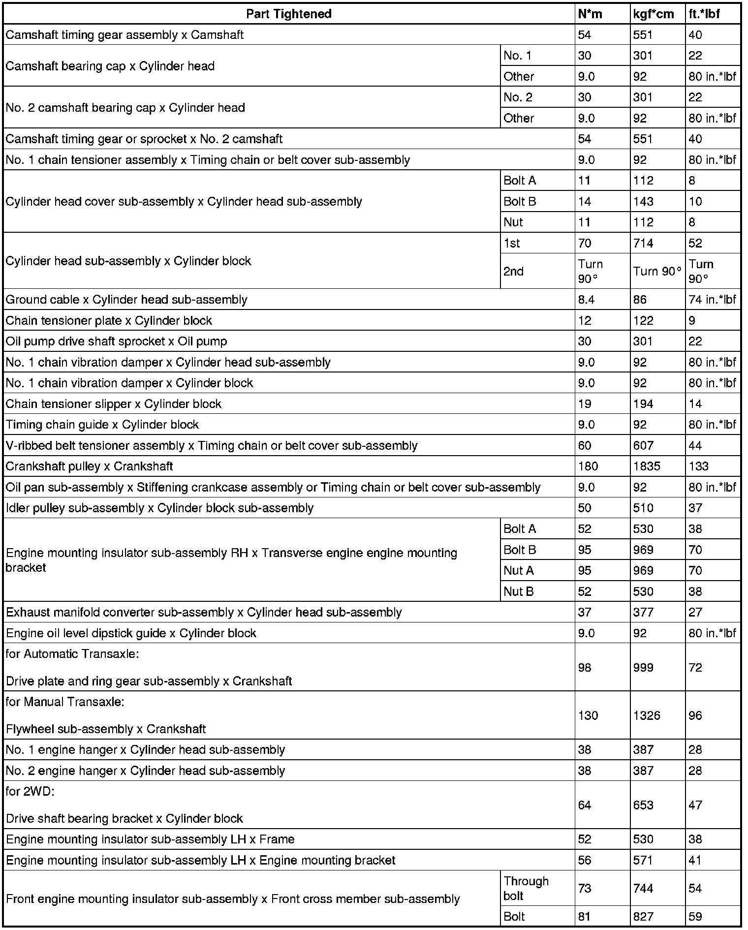 SPECIFICATIONS: 2AZ-FE ENGINE MECHANICAL: TORQUE SPECIFICATIONS