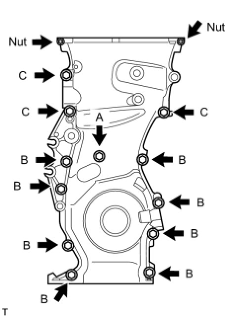 Temporarily install the timing chain cover with the 12 bolts and 2 nuts.