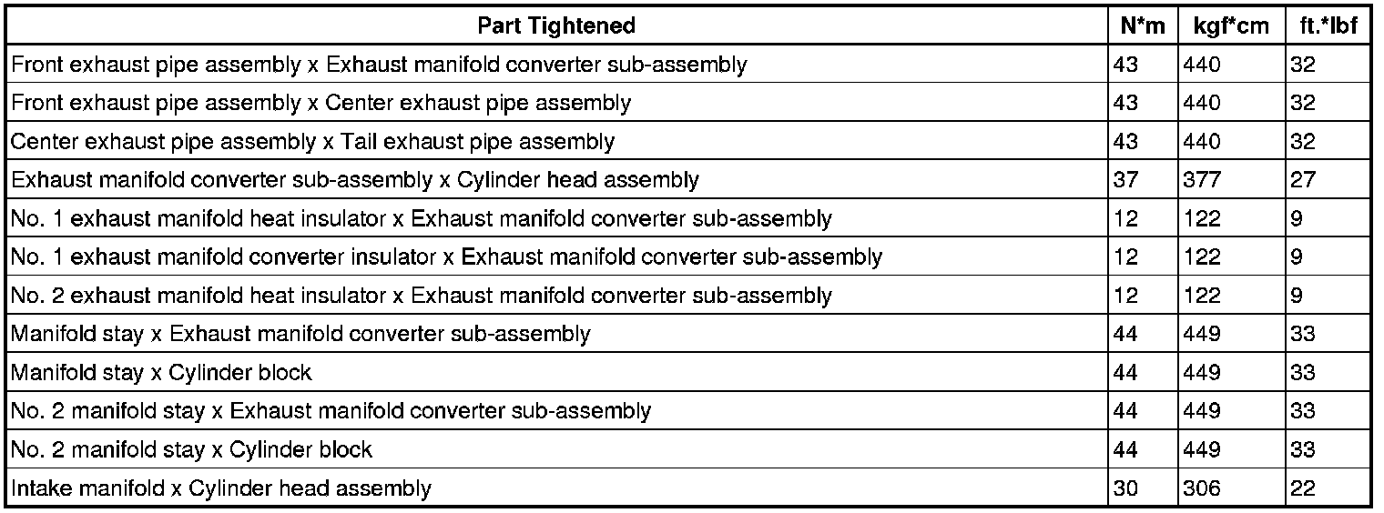 SPECIFICATIONS: 2AZ-FE INTAKE / EXHAUST: TORQUE SPECIFICATIONS