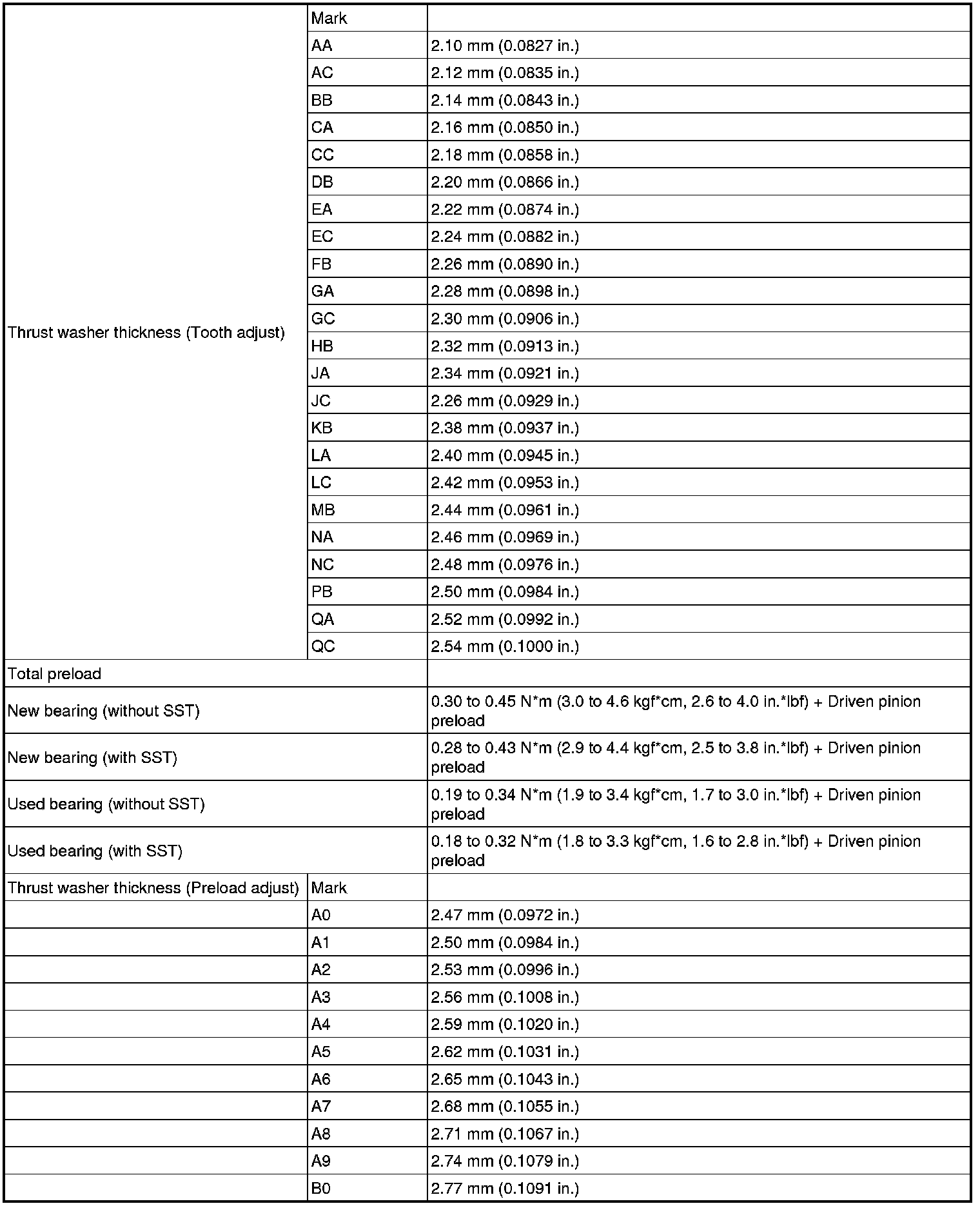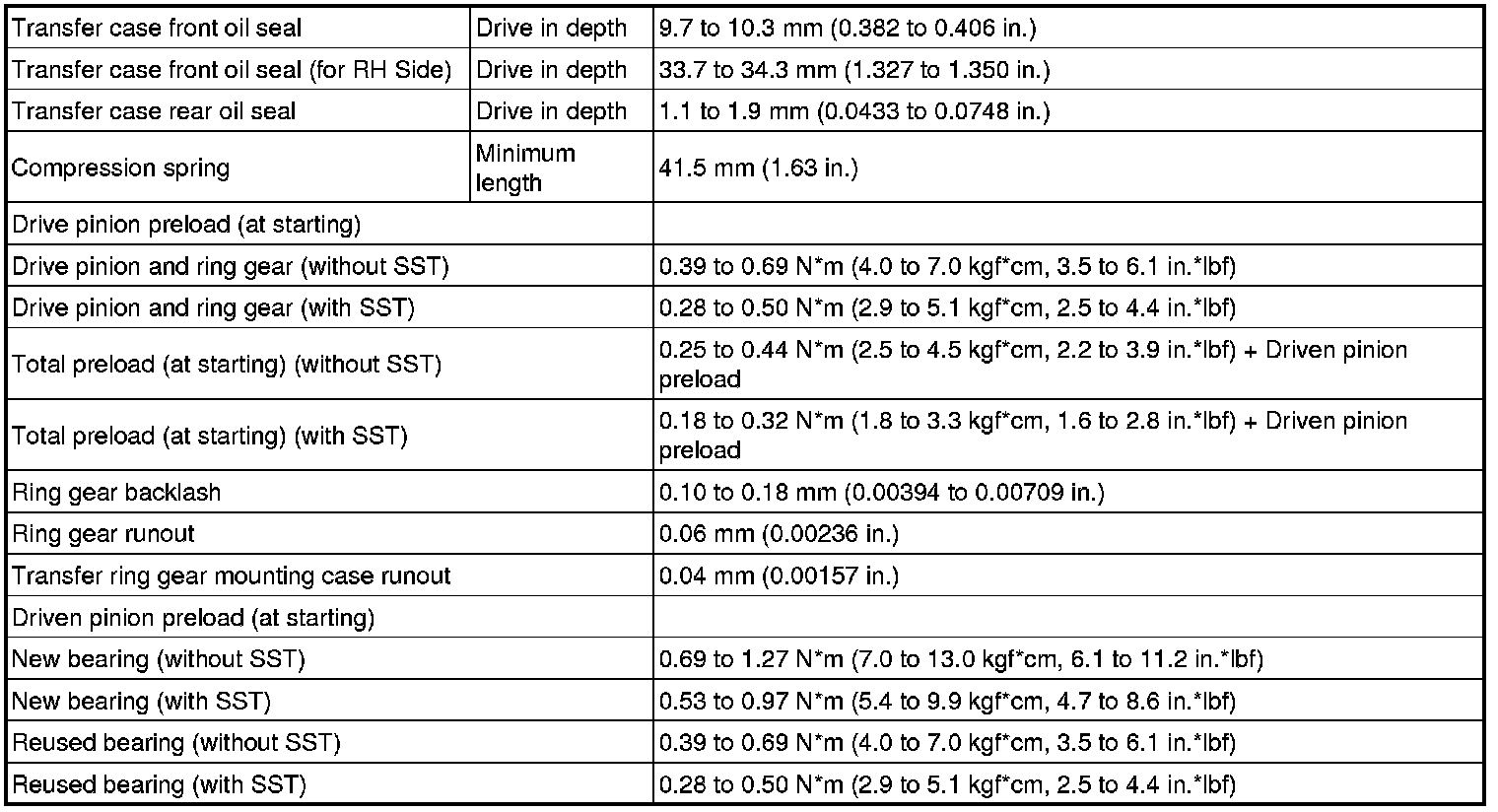 SPECIFICATIONS: MF1A TRANSFER / 4WD / AWD: SERVICE DATA
