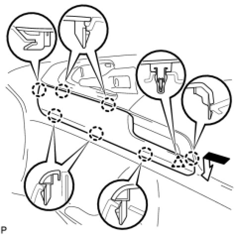 (b) Engage the 7 claws and clip to install the front armrest upper base panel RH.