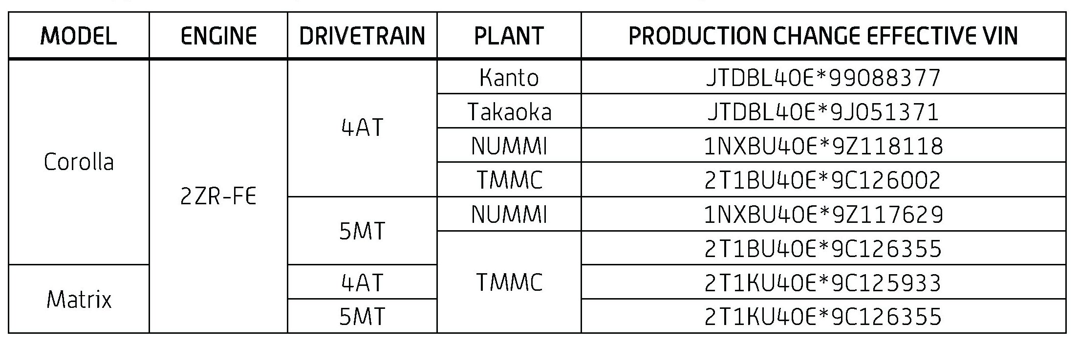 This TSB applies to vehicles produced BEFORE the Production Change Effective VINs shown.