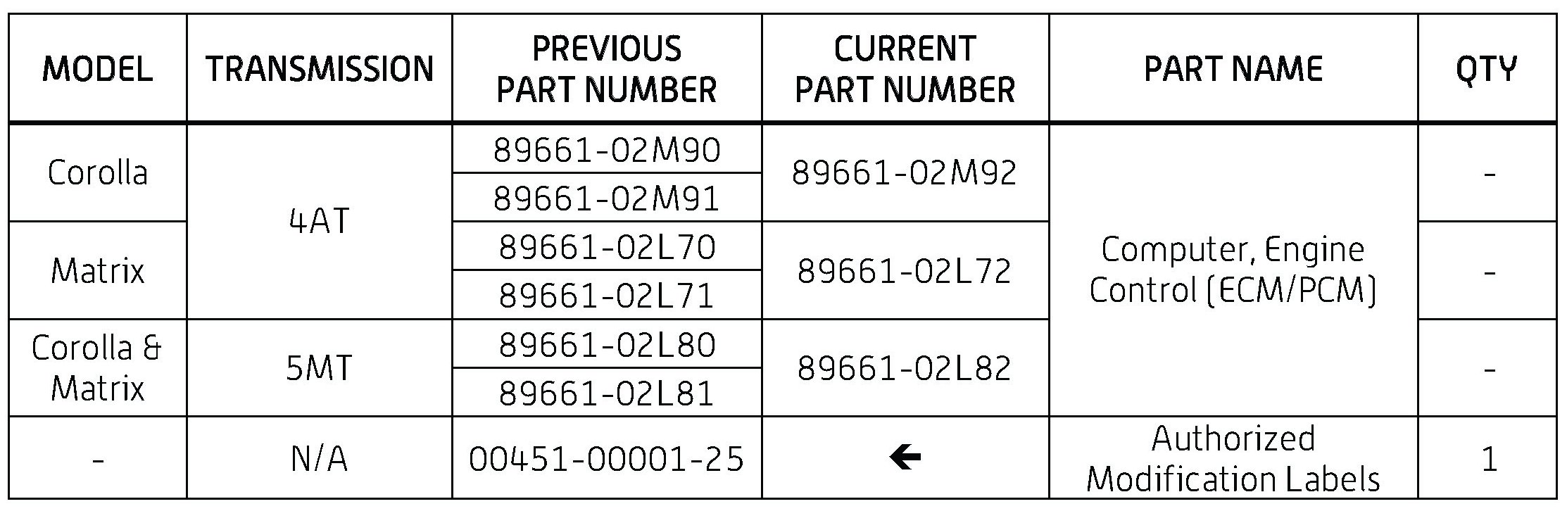 - ECU part number [Refer to the Parts Information section for the CURRENT PART NUMBER]