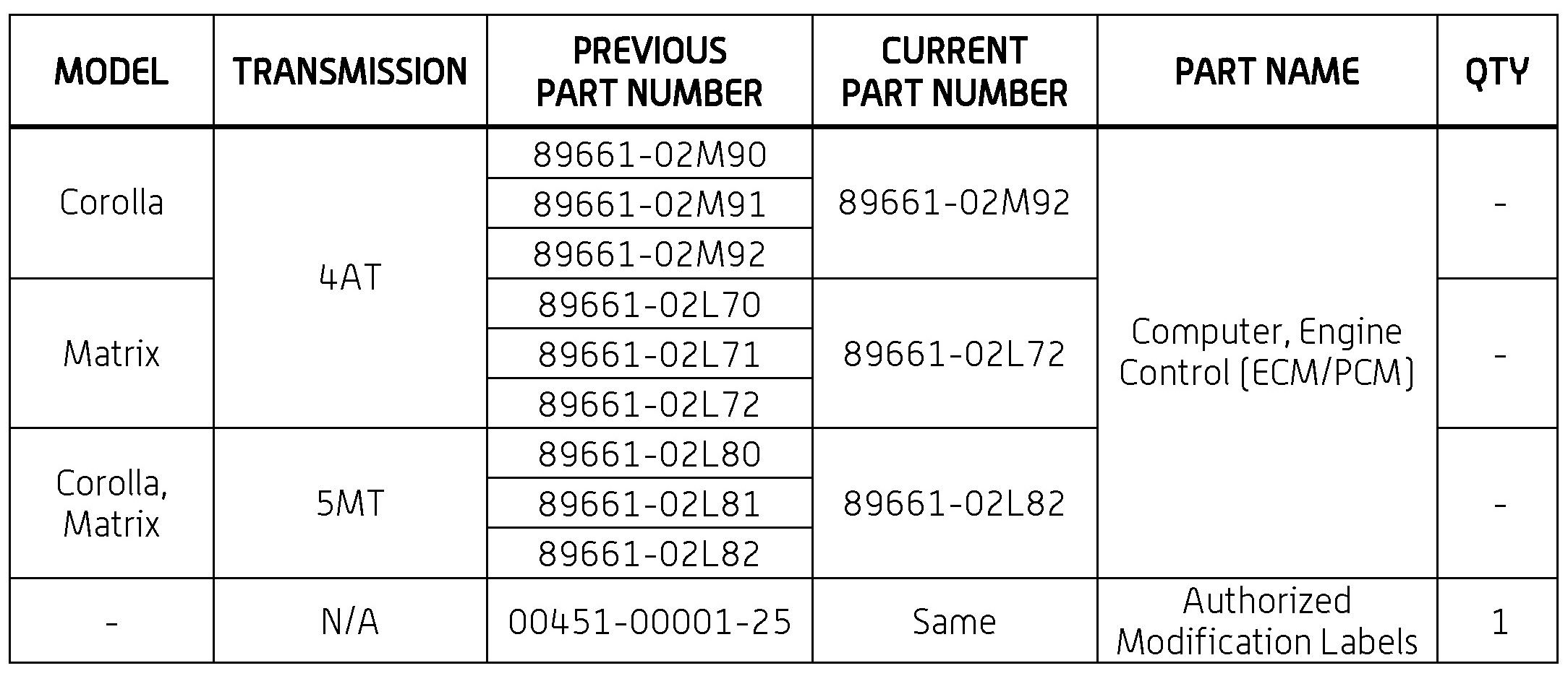 - ECU part number [Refer to the Parts Information section for the CURRENT PART NUMBER]